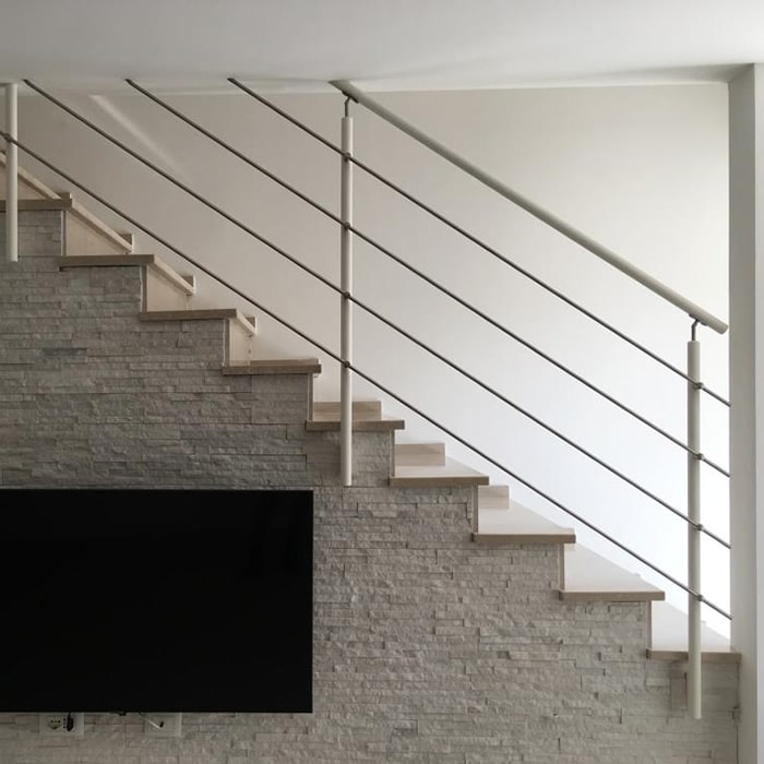 Ringhiera semplice in stile moderno tubolare con finitura bianca.